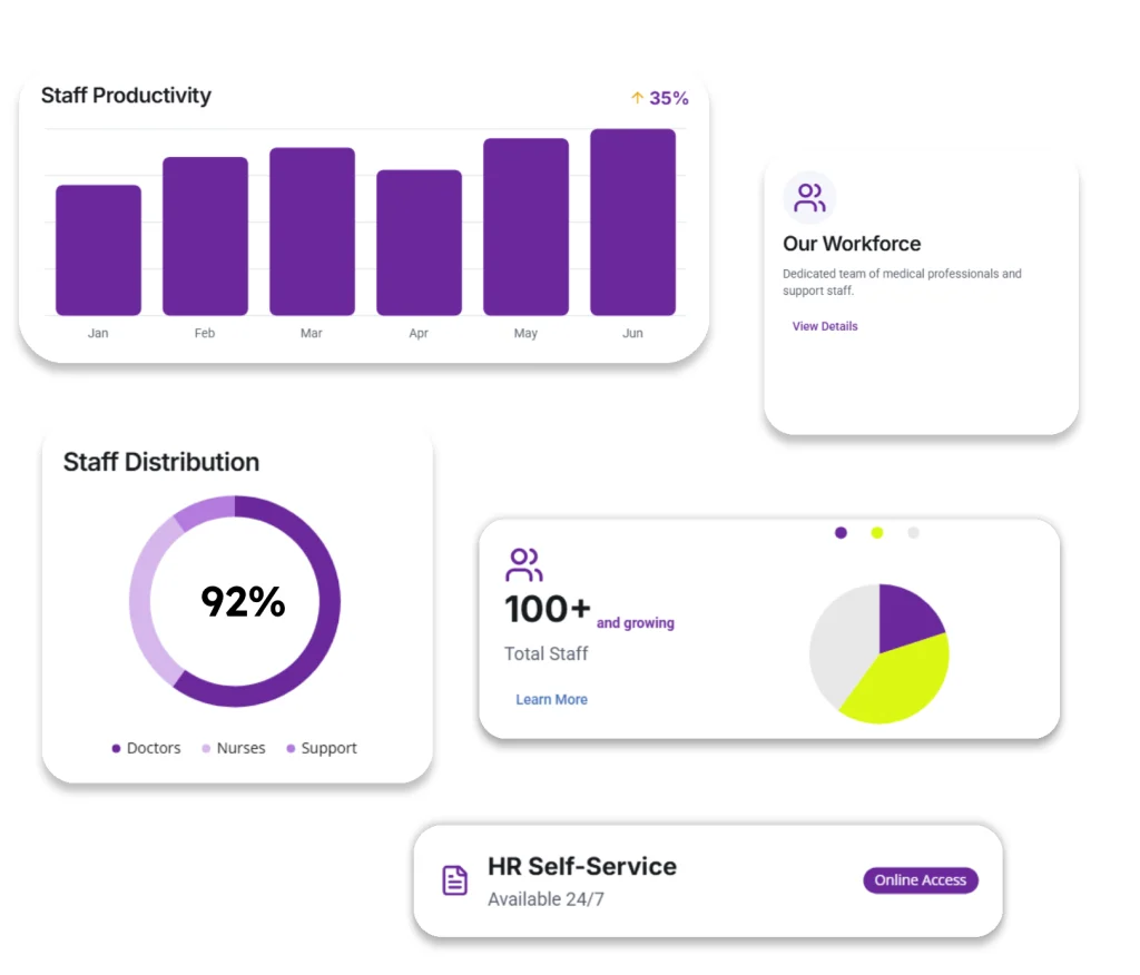 Through Sowaan’s erp for healthcare users can establish a large number of doctors and nurses alongside multiple other medical staff. Each schedule holder maintains specific viewing permissions and functional authorities. Workers can independently access human resource information including their leave details and pay statements.